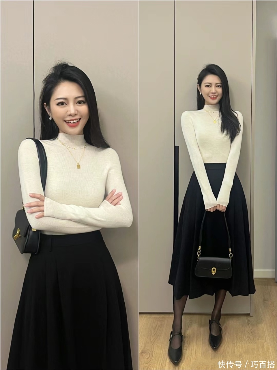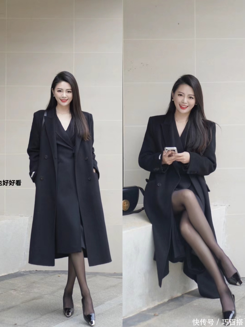 要思行使基础单品呈现出和黑丝氛围感相似的成果,各人在选款时,一定要保证版型和配色“轻柔帖服”,基础色+基础款是标配,径直照搬照抄博主身上这套造型亦然OK的。